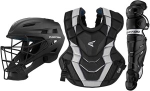 Easton Elite X Catcher’s Gear Set. Set Includes Catcher’s Helmet, Chest Protector and Leg Guards. Available in Youth, Intermediate and Adult with many color options.
